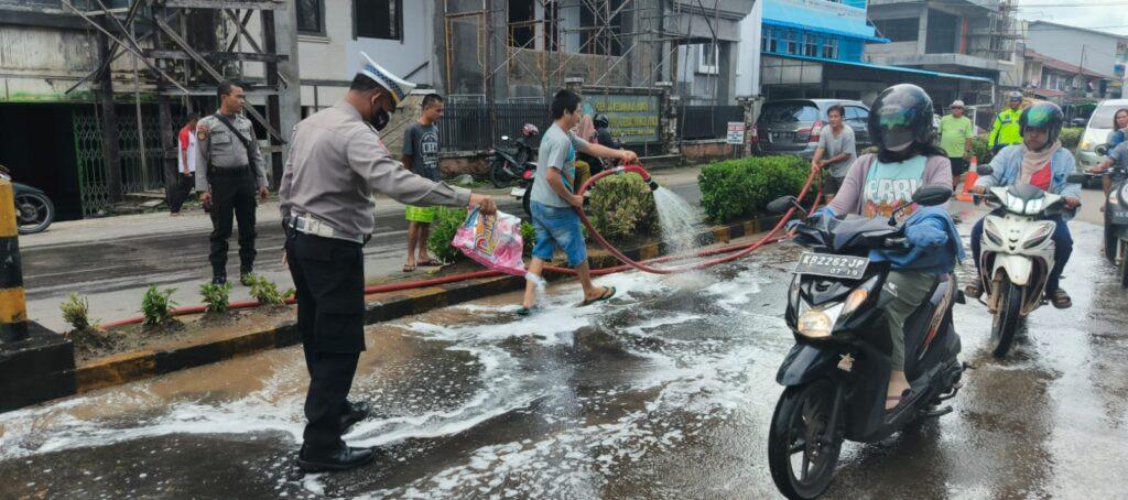 “Bersama BS-PBK kami melakukan penyiraman dan pembersihan dengan cara disemprot air dan cairan detergen guna menghilangkan tumpahan solar yang bisa membahayakan pengguna jalan,” ujarnya.